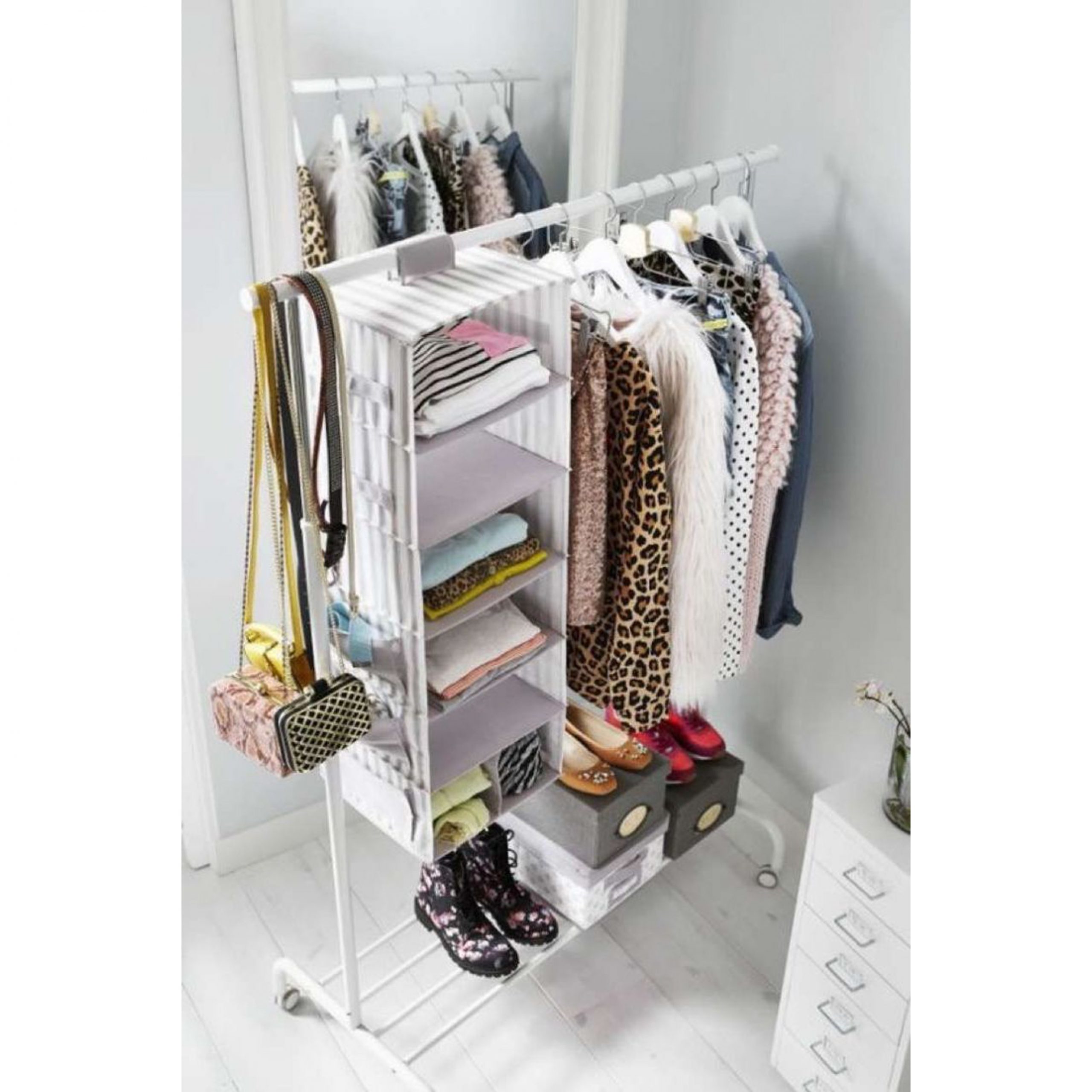 به راحتی می توانید ارتفاع را متناسب با نیاز خود تنظیم کنید زیرا این رگال لباس را می توان در 6 سطح ثابت در جای خود قفل کرد.